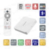Устройство поддерживает голосовое управление, позволяющее управлять смарт девайсом, искать контент, переключать каналы и запускать приложения с помощью голоса. В комплекте идет Bluetooth пульт с микрофоном. Также для дополнительного расширения функционала рекомендуется приобрести пульт с гироскопом, также известный как Air Mouse.