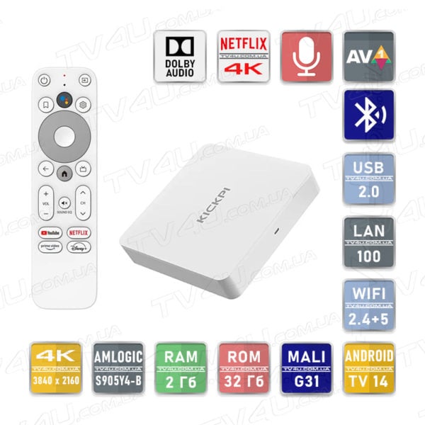 Смарт ТВ приставка Kickpi KP1 NETFLIX 2/32 Гб Android TV 14 Smart Box